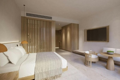 Номера красивые, у каждого есть красивый балкончик с потрясающим видом на пляж. В номерах все белоснежное от постели до халатов.
